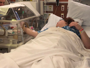 It was filled with nurses and there was an incubator in the middle of the room with a yellow blanket draped over the top. They wheeled my bed right beside the incubator and opened one of the right side doors for me to put my hand inside. I was able to feel her soft, delicate skin. I could barely see her face. She had a face oxygen mask and hat on that covered most of her tiny head.